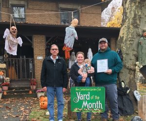 The New Cumberland Community Projects Committee has recently made some updates to the monument located next to the Swaney Library on Court Street. The makeover began with the removal of old trees and brush behind the granite marker. A professional monument cleaning company then cleaned the stone, and a new cement pad with stamped stones was added across the front. Along the back of the marker, three flag poles were added, and new wrought iron fencing was installed on both sides of the monument. Additional fencing on top of the hill behind the memorial is scheduled for spring. Permanent dusk to dawn lighting was also added. Monies for this project came from a grant from the Pugliese Foundation from Steubenville and a donation from the state that was delivered to the committee by State Senator Ryan Weld. The monument was dedicated on November 11, 1957, and was paid for by local citizens with a fund raising campaign.