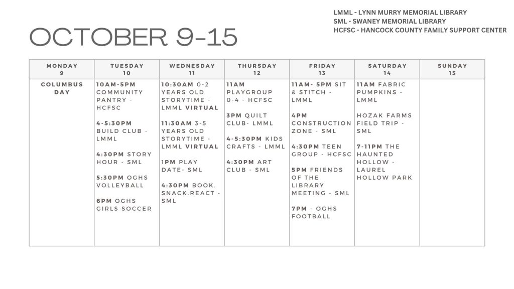 CalendarOCTOBER 9-15 CALENDAROctober 8, 2023 Share on Facebook Share on X (Twitter) Share on Pinterest Share on LinkedIn Previous Post MOVING AHEAD TOGETHER MEETS WITH NEWELL COALITION Next Post AND THEN AGAIN.......by Tamara Pettit