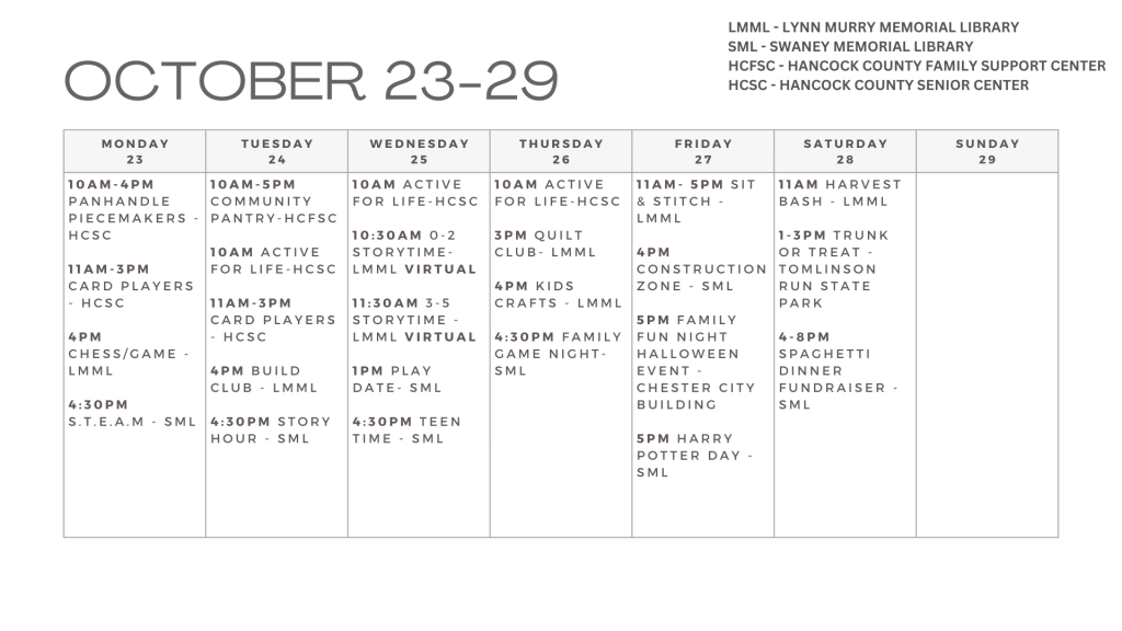 CalendarOCTOBER 23-29 CALENDAROctober 22, 2023 Share on Facebook Share on X (Twitter) Share on Pinterest Share on LinkedIn Previous Post PROGRAM OFFERS SUPPORT TO GRANDPARENTS RAISING GRANDCHILDREN Next Post LIONS HOLD WALKATHON