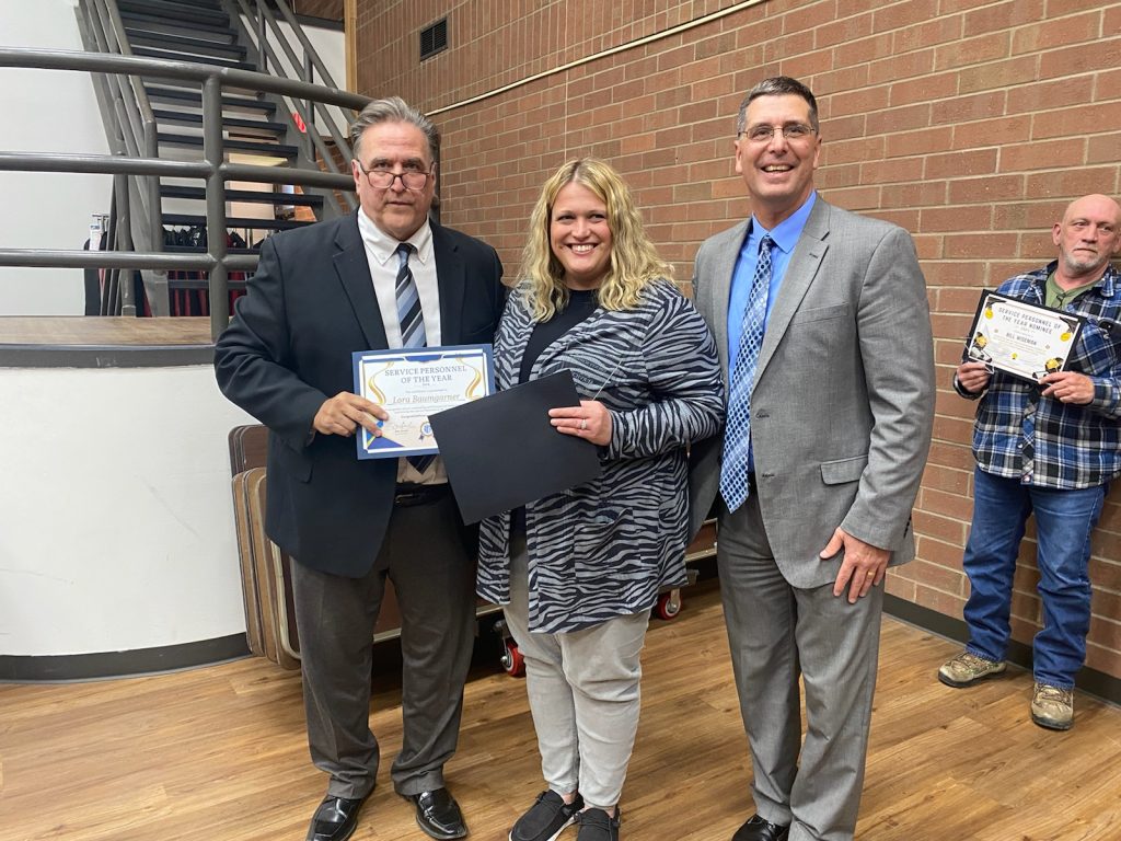Lora Baumgarner of Oak Glen High, was selected as School Service Personnel of the year. She is an aide and said she “absolutely adores my job.” Other Service Personnel nominated for the honor included: Linda Nicoles, New Manchester Elementary; Melissa McIntosh, Allison Elementary; Alicia Wells, Oak Glen MiSdle; Paul Guzzo, Weirton Elementary; Carla Long, Wejr Middle; Carolyn Puskarich; JDR IV, Denise Hayes; Transportation, Bill Wiseman; and Central Kitchen, Lori Ballato.