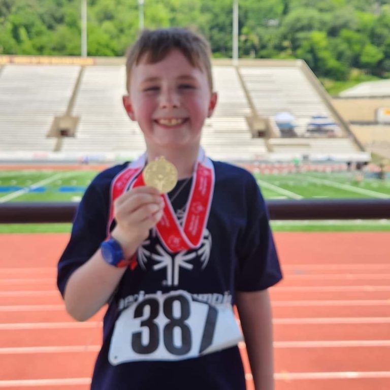 Eight-year-old D.J. Wishon brought home some impressive medals from the State Special Olympics in Charleston. D.J., who represented Hancock County, won Gold in the 100-meter run; Silver in the running long jump and Silver in the Javalin throw for his age group.