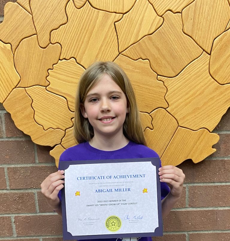 Abigail Miller was the winner of the Smart 529 Award young writers’ contest of “What do I want to be when I grow up. There were 12 winners out of 5,000 entries. Allison Elmentary recieved $500 for Abigai’ win while Abigail herself also received $500.…
